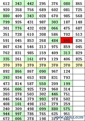 罗列三直选号码370开出之后,其下期号码的特质为: